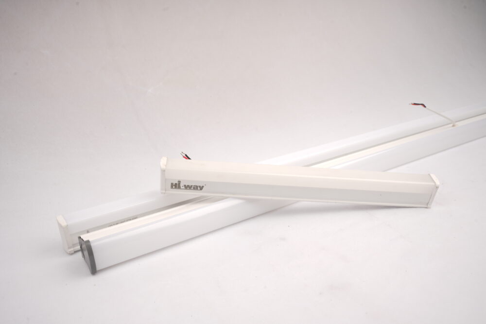 Sleek linear LED batten for uniform light distribution, replacing fluorescent tube lights with superior efficiency and color variety for both functional and decorative use.
